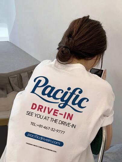 女士夏季休闲宽松百搭白色字母印花短袖T恤 - 白色 - 查看 1