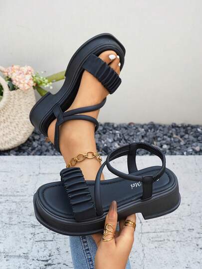 女士夏季新款坡跟舒适露趾凉鞋