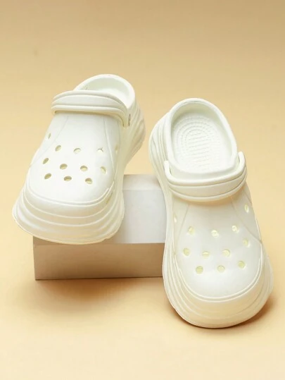女士加厚EVA材质拖鞋轻便舒适软鞋纯色室内拖鞋百搭软底休闲透气凉鞋平底鞋 - 白色 - 查看 1