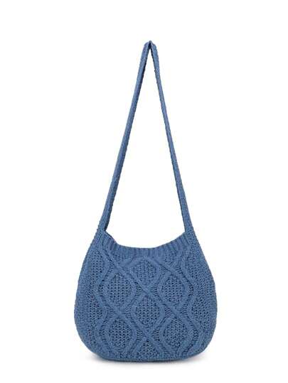 女用休閒搭扣設計簡約鏤空大容量鉤針細部單肩包 - 藍色 - 查看 1