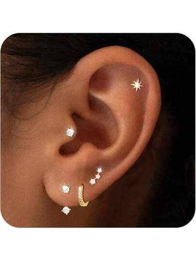 BERISO 14K Gold Hoop Earrings For Women - Hypoallergenic Small Huggie Hoops Cartilage Earrings Set Cute Cubic Zirconia Dangle Stud Earrings Jewelry Gifts - 5對 E0759-GD - 查看 2