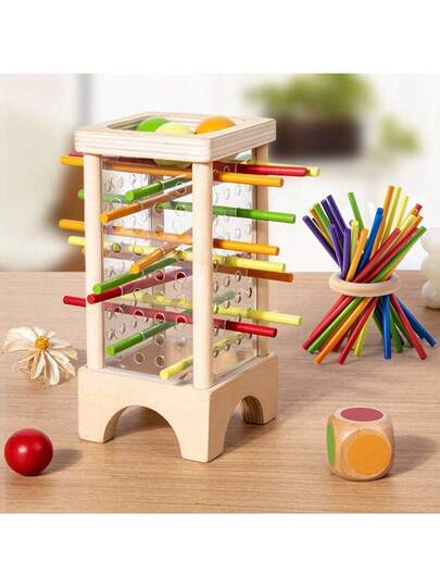 木制骰子游戏彩色木棍棋盘游戏蒙特梭利儿童亲子互动益智早教玩具益智思维训练色彩认知专注力训练互动拼图木制玩具 - 彩色 - 查看 1