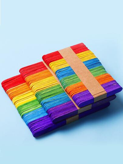 木製DIY和組件組裝材料彩色數學棒、工藝棒、冰淇淋棒、多色天然木棒,大約 50入組/捆 - 彩色 - 查看 1