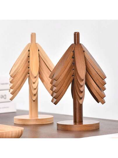木制热菜三脚架,树形三脚架套装,像圣诞树一样存放,可折叠厨房木制三脚架,适用于热菜、锅、碗、茶壶、火锅架 - 彩色 - 查看 1
