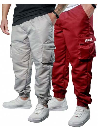 Set Of 2 Men's Jogger Pants With Pockets, Cargo, Windbreaker, Skate, Burgundy/Gray - 彩色 - 查看 1