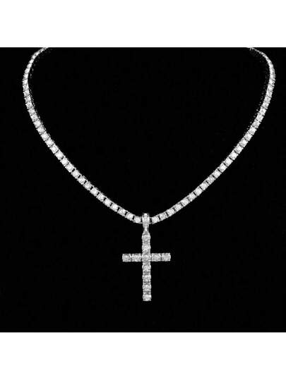 XJYHDY 男式女式嘻哈吊坠项链,带 4 毫米锆石网球链,冰晶精致闪亮珠宝时尚潮流创意 - 銀色 - 查看 1