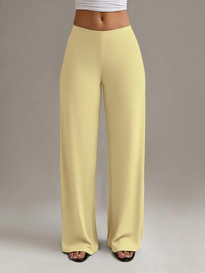 XLLAIS 女士时尚弹力高腰长款直筒裤秋冬服装 - 黃色 - 查看 1