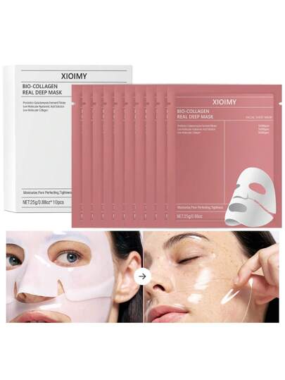 Xioimy 10 件优质胶原蛋白深层保湿面膜套装,有助于滋养、软化和提亮肌肤。富含生物活性胶原蛋白,告别干燥、暗沉和松弛,提供胶原蛋白面部护理。 - 白色 - 查看 2