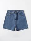 SHEIN PETITE 女裝寬鬆休閒牛仔半褲,帶口袋