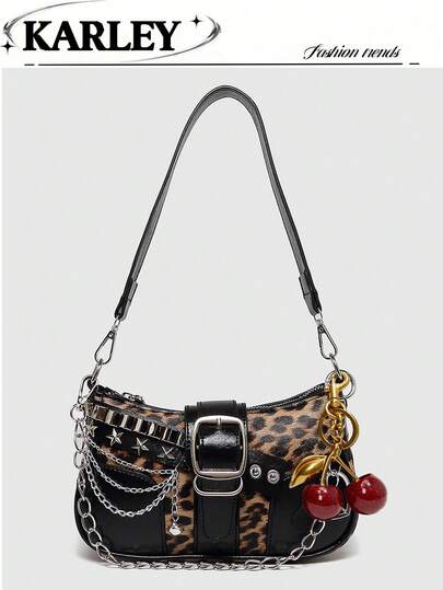 Y2K 时尚百搭星月设计独特银色千禧年肩链斜挎包,完美契合女孩街头风、派对装扮,亦可作为礼物赠送。星空印花女包 Y2K