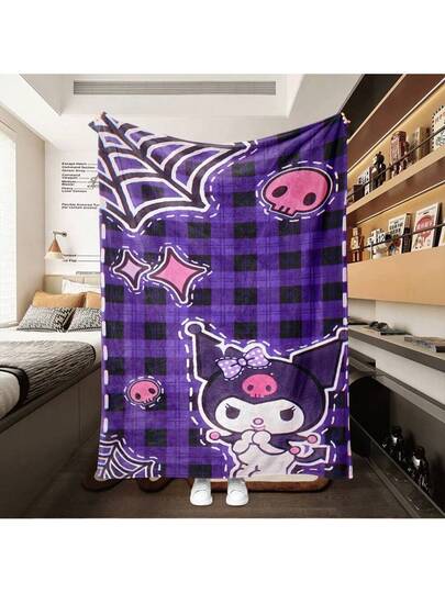 1 件 Sanrio Kuromi 图案柔软毛绒印花法兰绒毯,万圣节骷髅盖毯,适合床、沙发、办公室、露营 - 所有季节,送给家人和朋友的完美万圣节礼物,办公室膝毯 | 卧室装饰 | 蓬松涤纶,格纹设计,紫色盖毯 - 彩色 - 查看 1