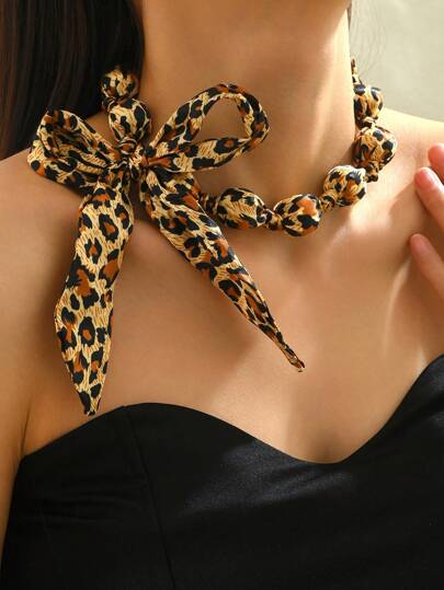 1 件波西米亚风格蝴蝶花卉豹纹波尔卡圆点丝带领带项链,适合女性夏季度假、日常休闲、派对、生日或圣诞节的理想礼物(图案随机) - 彩色 - 查看 5
