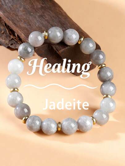 YAUKIA 1件女士优雅天然翡翠串珠手链,弹力饰品,具有疗愈、增强个人力量的功效,适合日常佩戴