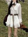 2025韩国时尚早春法式小众纹理单排扣系带圆领女衬衫