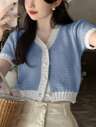 2025 泡泡袖法式套头衫修身女士时尚衬衫,短袖