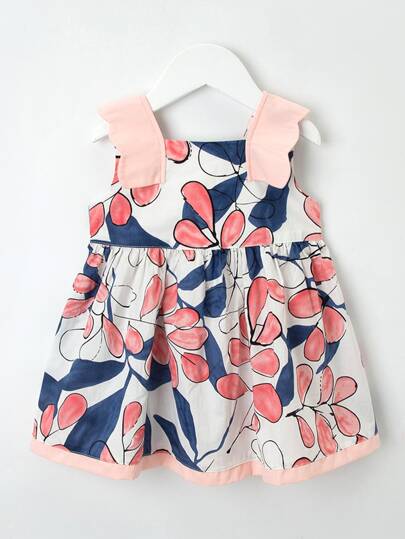 YINGZIFANG 小女童植物圖案荷葉邊袖口連衣裙 - 彩色 - 查看 1