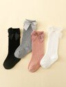 4 双女婴/幼儿丝带装饰甜美可爱网眼及膝袜,春夏搭配糖果色,适合女孩