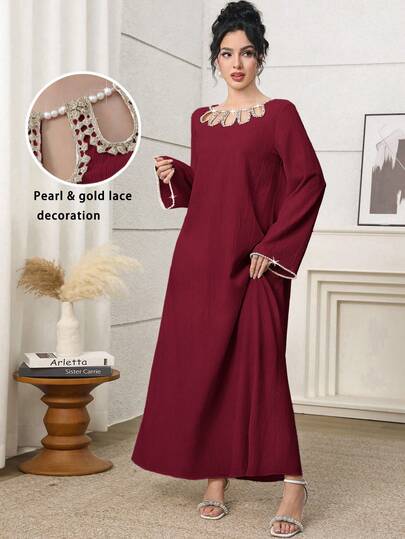 Yasmyna 女士土耳其长裙和阿拉伯传统长袍 - 酒紅色 - 查看 1