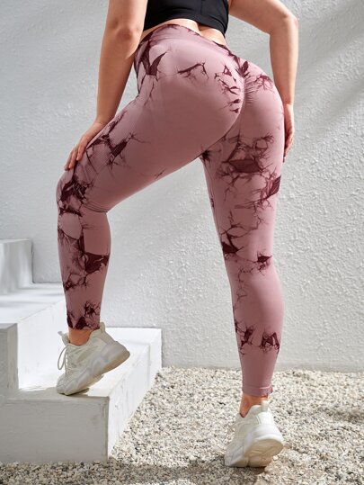Yoga Basic 大碼紮染無縫透氣柔軟運動打底褲 - 淡紫色 - 查看 1