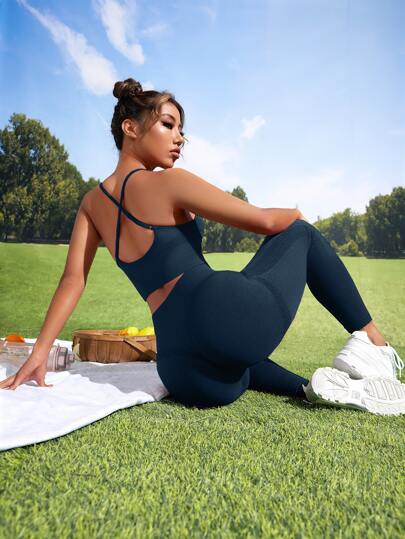 Yoga Basic 無縫後背十字交叉運動套裝 - 藏蓝色 - 查看 1