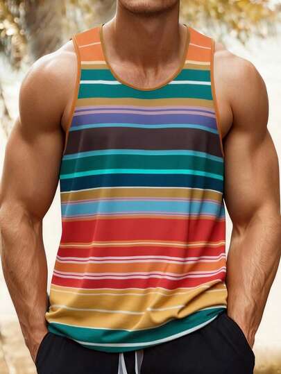 男士复古条纹休闲背心 - 彩色 - 查看 1