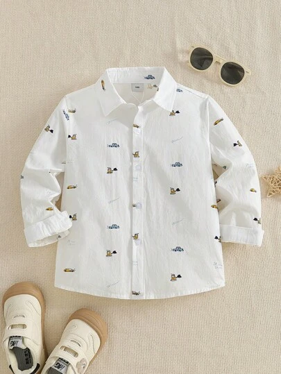 秋季小男孩汽车印花衬衫 - 白色 - 查看 1