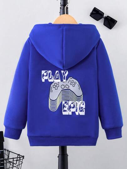 男童标语图案拉链卫衣 - 藍色 - 查看 1