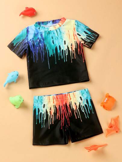 男小童潑墨圖案沙灘泳裝