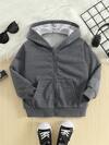 SHEIN 男童休闲日常百搭舒适保暖连帽拉链加厚梭织外套,适合上学、花园、海滩、生日、春、夏、秋、冬等各种场合。