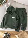 SHEIN 2 件套年轻男孩休闲学院风舒适时尚简约实用百搭针织连帽衫和工装裤口袋裤套装儿童服装