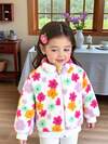 Sparklyn 年轻女孩活力花卉印花立领毛绒拉链开衫,适合冬季外出