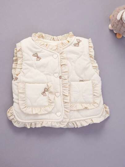 褶皺邊 口袋 前紐扣純色女童(小)棉服