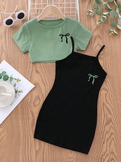 6. 女童蝴蝶结印花短袖连衣裙,带吊带裙