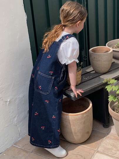 Dazy Kids 少女可爱韩版印花水洗牛仔背带裤和连体裤,夏季