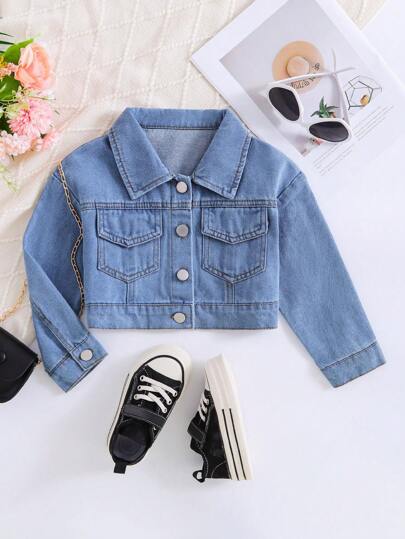 年轻女孩时尚休闲铆钉洗水牛仔夹克,秋冬 - 中等水洗藍 - 查看 1