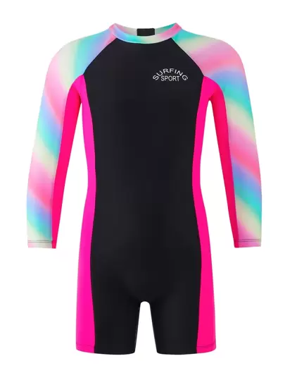 年輕女孩字母圖形漸變拉鍊後背一片式泳衣 - 彩色 - 查看 1