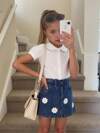 SHEIN 2 件白色泡泡袖衬衫搭配蓝色花卉印花牛仔裙套装,适合学校、返校、休闲和运动