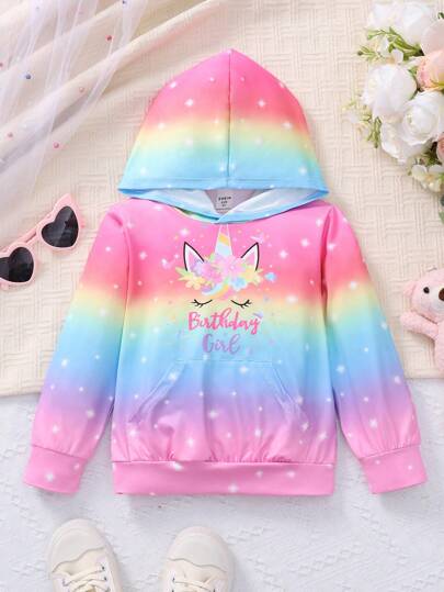 SHEIN 女孩独角兽字母图案渐变卫衣 - 彩色 - 查看 1