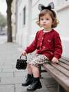 SHEIN 小女孩圆领蝴蝶结开衫,休闲日常穿着,秋冬季,长袖上衣,优雅可爱,高品质,温暖柔软,多功能,适合玩耍、日常穿着、学校、秋冬季,搭配白衬衫,返校季节。学院风格,