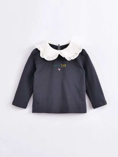 年轻女孩时尚可爱字母心形印花长袖T恤蕾丝彼得潘领春秋 - 藏蓝色 - 查看 4