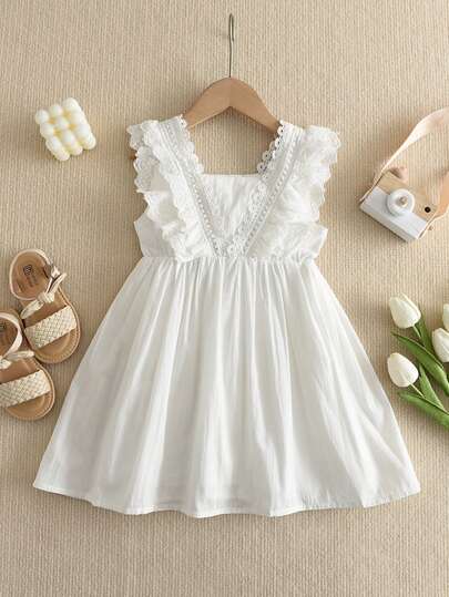 年轻女孩时尚蕾丝无袖公主度假连衣裙,夏季 - 白色 - 查看 6