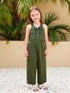 Elladie kids 女童波浪条纹印花无袖连体裤,腰部系带,休闲度假/日常穿着,夏季假日