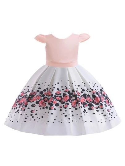 少女派對禮服連緞面裙和花飾裝飾,優雅風格,適合學校表演和戶外活動 - 粉色 - 查看 1
