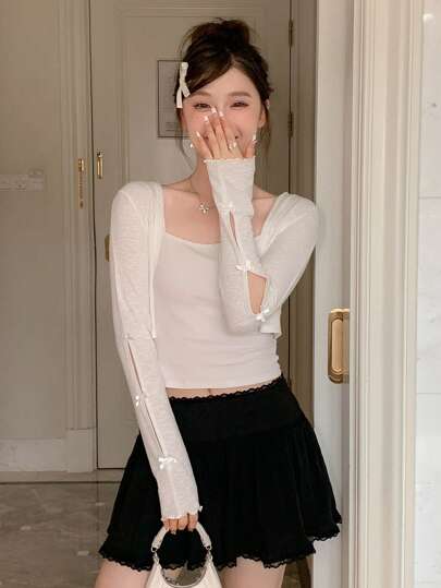 DAZY 纯色前开式短款上衣 女式长袖上衣 - 白色 - 查看 8