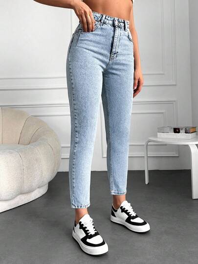 ZIRRA 女式休闲日常水洗斜口袋紧身牛仔裤 - 淺色水洗藍 - 查看 1