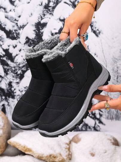 ZOSIVC 女式一脚蹬保暖内衬雪地靴,休闲百搭舒适冬靴,户外运动防滑登山靴 - 黑色 - 查看 6