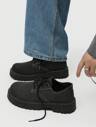 男士黑色圆头德比鞋,高端厚底休闲正装鞋,宽版仿旧外观,水洗牛仔布,舒适,防滑橡胶外底,耐用