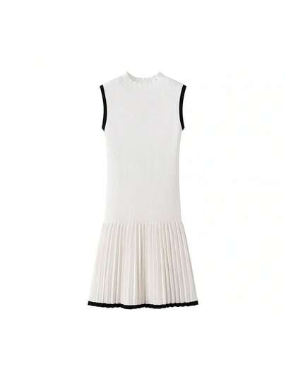 ZR European And American Style Women's Clothing Fashion Round Neck Slim Casual Knitted Sweater Sleeveless Dress Short Skirt - 白色 - 查看 1