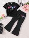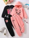 3 件装年轻男孩字母印花短袖 T 恤和短裤套装