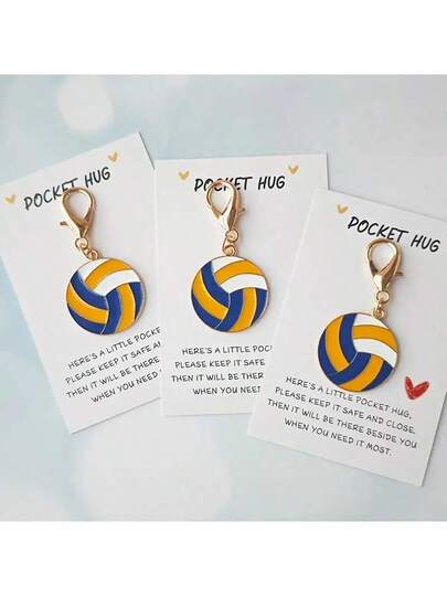 锌合金排球、足球、篮球钥匙扣吊坠,带口袋拥抱卡,励志留言,无纺布编织,适合运动爱好者、生日、情人节、母亲节、父亲节、足球比赛日、校园、啤酒节 - 彩色 - 查看 1
